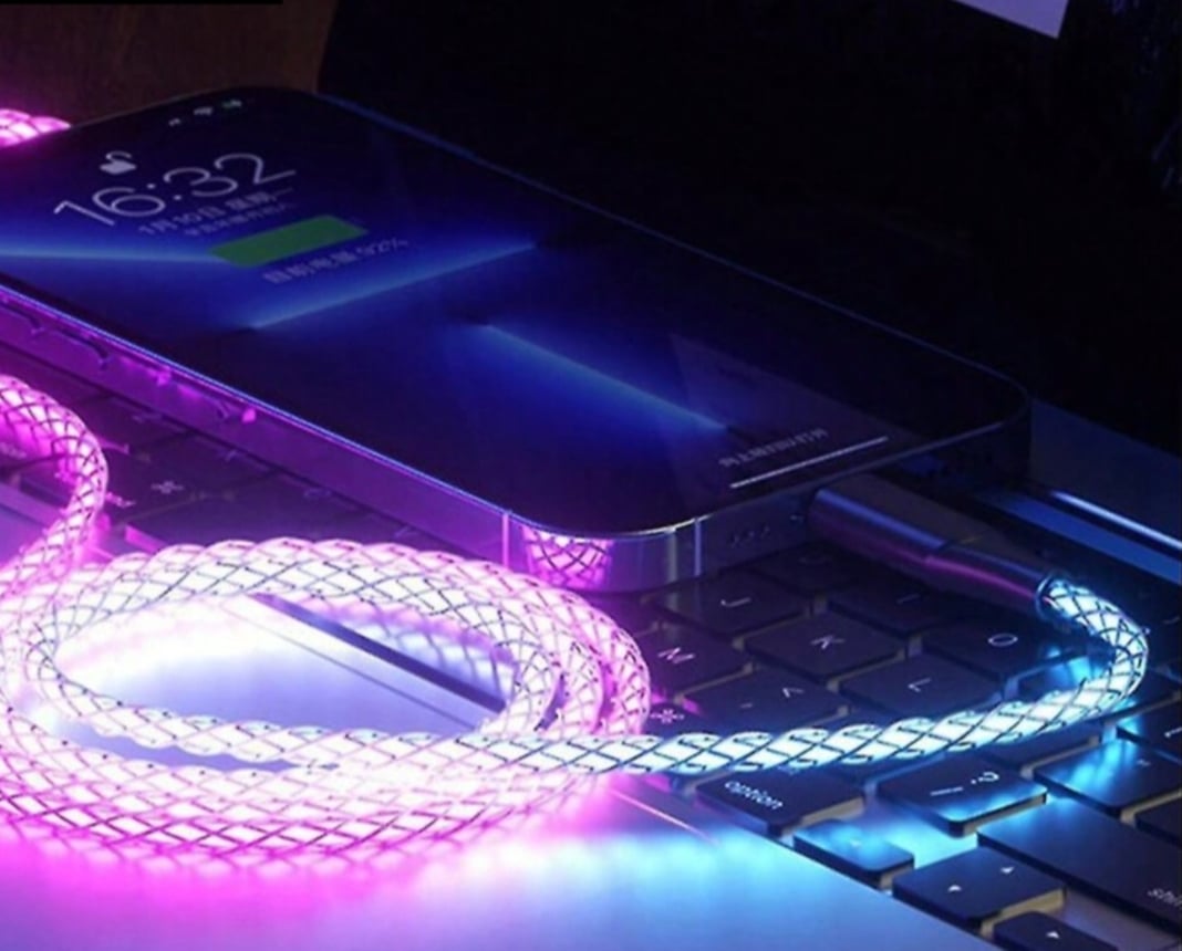 Luxury Fast Charging Rgb Breathing Luminous Gradient Light Data Cable 6a 66w