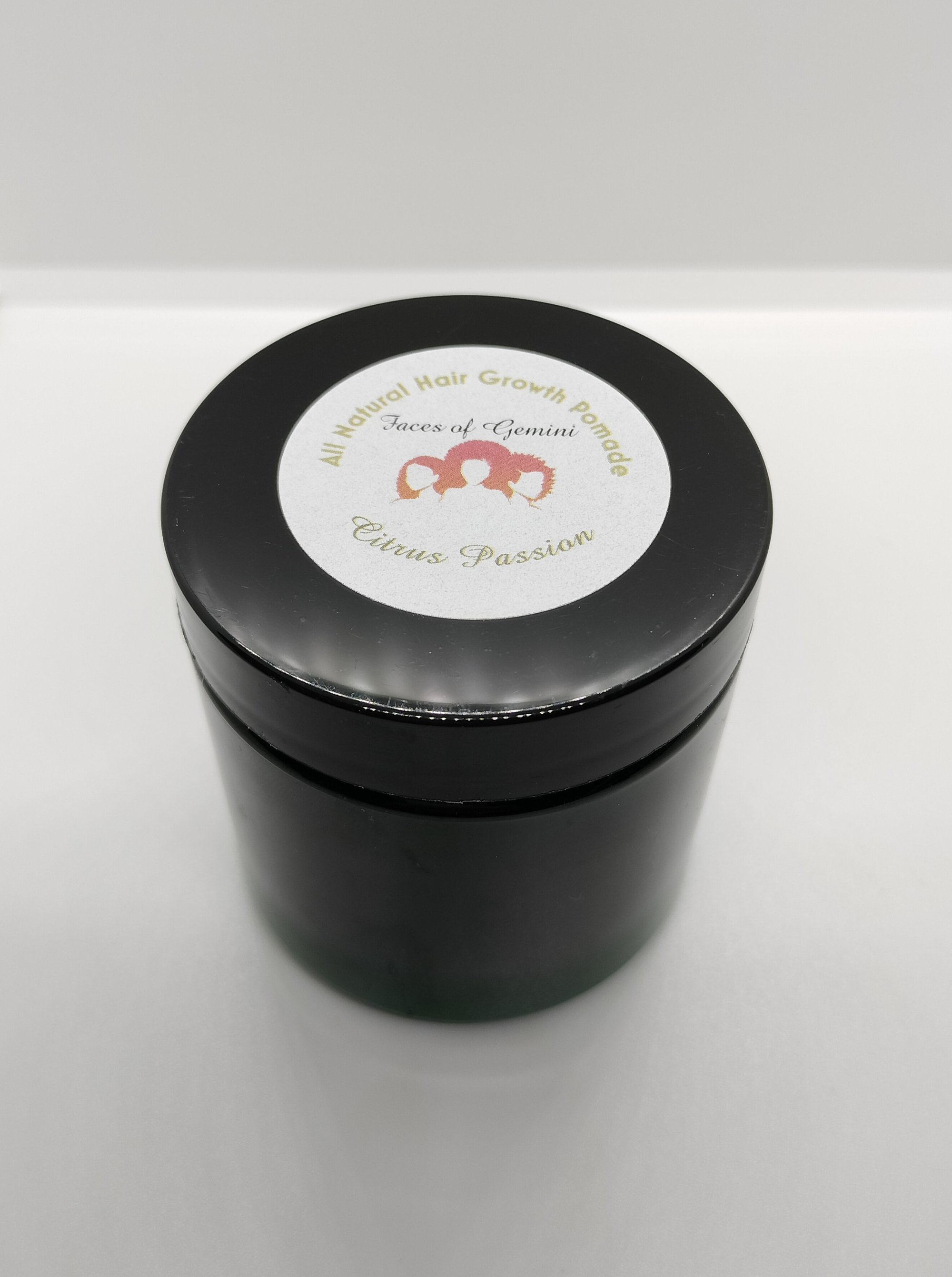 Our hair growth pomade is made with essential oils, natural oils and butters that are known to repair damaged hair follicles, and nourish the scalp while helping reduce dry, flaky skin. This pomade has a unique aroma that gives you a feeling of smelling fresh fruits from the tropical islands. This natural pomade helps get rid of dandruff and helps promote healthier, thick, and shiny hair growth. The pomade will give your hair a deep moisturizing treatment while strengthening your hair and help prevent split ends, thinning, hair loss, and hair breakage. This hair growth pomade is loaded with fatty acids, and vitamins A, C, D, E, F, and K. This pomade has the ability to reduce inflammation, prevent acne, soothe sunburn, rejuvenate the skin, fight free radical damage, boost the immune system, and speed up the healing process. This pomade has a multi-purpose use, it can help restore shine and softness back to the hair and can treat stretch marks, fine lines, and wrinkles on the skin. Proven to grow hair for beards, eye lashes, edges, eyebrows, bald spots, etc. (Comes in a 4 oz Pet Plastic jar -about a month supply).